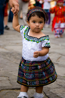 Chłopcy ubrani są w całości na biało, na głowie mają sombrero lub przewiązaną chustę i często domalowane wąsy. Natomiast dziewczynki mają na sobie spódniczki, które nazywają się „corte” oraz bluzki „guipil”, są uczesane w warkocz i maja starannie zrobiony makijaż. W procesji mogą uczestniczyć wszyscy, ale przebierane w tradycyjne stroje są tylko dzieci, które nie ukończyły siódmego roku życia. W zwyczaju Indian jest również nadawanie dzieciom imiona według imion świętych, którzy urodzili się tego samego dnia, stąd wiele dzieci, zarówno chłopców, jak i dziewczynek, urodzonych dnia 12 grudnia nosi imię Guadalupe. Dobrze, że u nas nie ma takiego zwyczaju, bo raczej nie chciałabym mieć na imię Paweł czy Szymon, ale tu w Gwatemali jak widać im to nie przeszkadza, że nadaje się to samo imię dzieciom obojga płci.