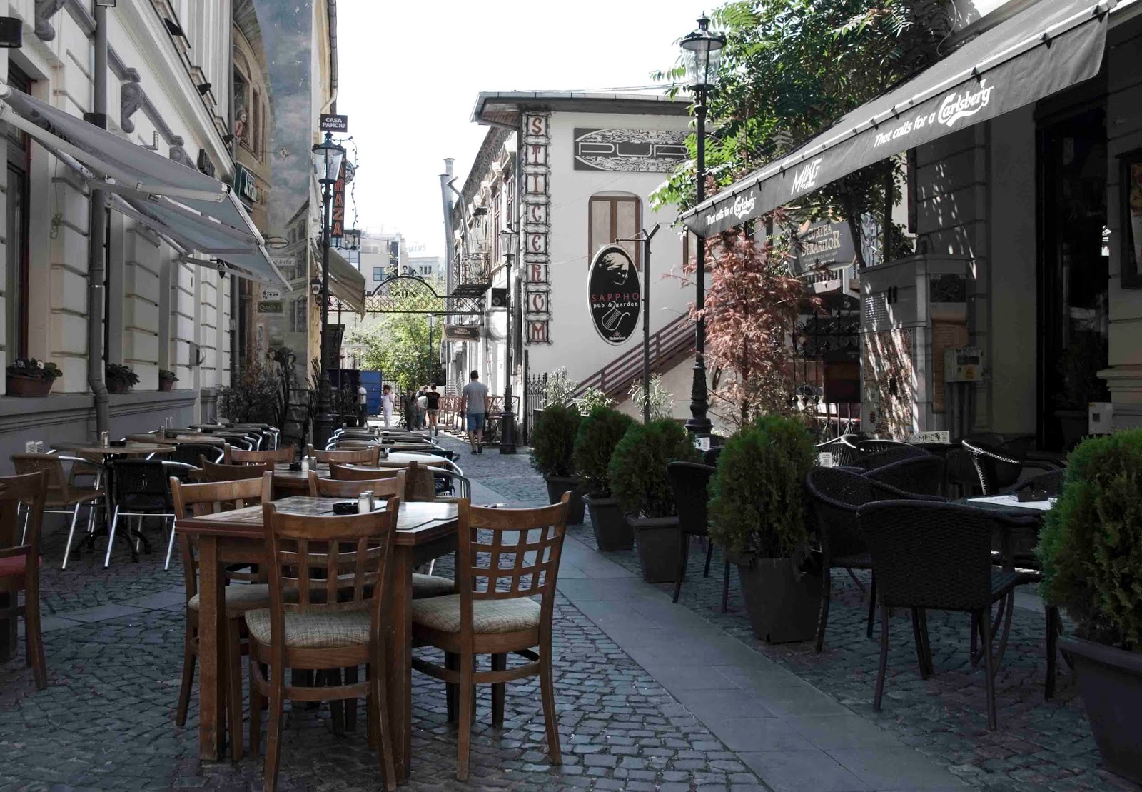Bukareszt wieczorem jest piękny. Potężne budynki, oświetlone licznymi lampami, nabierają majestatyczności. Uliczki w centrum miasta wypełnione są restauracjami i pubami, które tętnią życiem. Im późniejsza godzin, tym więcej osób wylega na ulice, by korzystać z ciepłych weekendowych wieczorów. Mijamy teatry uliczne, upchnięte w kąciki ulic, zaczepiamy o koncert reagge, odbywający się na małym rynku w centrum miasta, przysiadamy na kolację w jednej z dziesiątek restauracji.