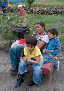Po raz pierwszy poczułam strach. Z jednej strony pijani cyganie, z drugiej grupa kilkunastu mężczyzn, nad wyraz zainteresowana jasnowłosymi turystkami (i po co nam było się farbować na blond?!). Próbujemy namówić Chuck’a na opuszczenie miejsca. W końcu to się udaje i wracamy do domu. Wieczorem czeka nas kolacja w przydomowej „kuchni”. Na palenisku w kotle szykuje się cygański gulasz. Siedzimy wokół w ciemnościach, które rozjaśnia jedynie ognisko. Pozostali Cyganie z plemienia też przybyli i zasiedli na pieńkach wokół. Wszyscy wpatrują się w tańczące pod garnkiem płomienie. Zaczynają nucić i podśpiewywać. Gdy kolacja jest już gotowa, Carmen nakrywa do stołu w pokojo-jadalni. Na jednym łóżku śpi już czteroletni Kozmin, który najpierw zasnął już na siedząco przy ognisku. Umorusany, w tym samym ubraniu, w którym biegał cały dzień leży pod czymś, co ma imitować kołdrę. Koło niego kładzie się starsza o trzy lata siostra. Tu nikt nie przejmuje się czystością i bakteriami. Dzieci tak jak cały dzień biegały, tak położyły się do łóżka, by następnego dnia zaraz po otwarciu oczu, być gotowymi do zabaw w nowym dniu.
