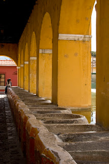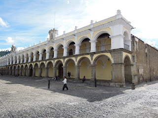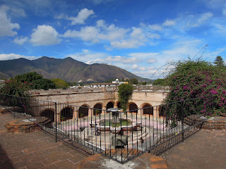 To piękny, o żółtej fasadzie, dekorowany białymi zdobieniami kościół Iglesia de Nuestra Senora de la Merced (strasznie długaśna nazwa!). Mało, że mijałam go setki razy w drodze do szkoły i do domu, ale i przy nim robiłam zdjęcia podczas świąt i jarmarku, to tu niejednokrotnie próbowałam smakołyków gwatemalskich, a nie miałam pojęcia, że przy kościele znajdują się ruiny dawnego klasztoru z największą w Ameryce Łacińskiej fontanną, liczącą 27 metrów (wstęp 5Q, czyli jakieś 2 zł!).