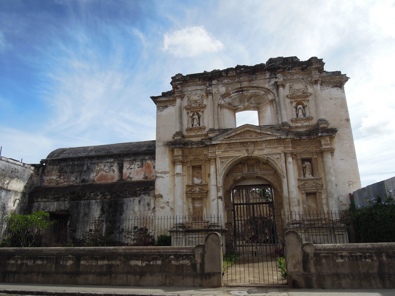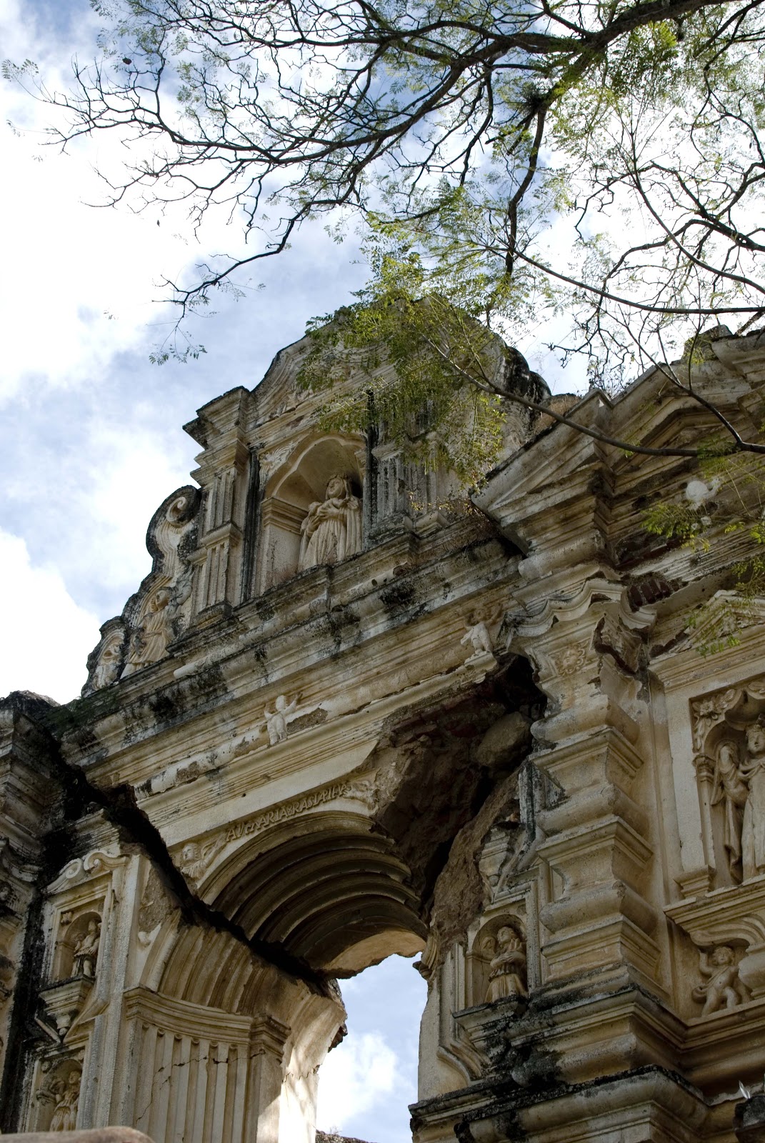 To piękny, o żółtej fasadzie, dekorowany białymi zdobieniami kościół Iglesia de Nuestra Senora de la Merced (strasznie długaśna nazwa!). Mało, że mijałam go setki razy w drodze do szkoły i do domu, ale i przy nim robiłam zdjęcia podczas świąt i jarmarku, to tu niejednokrotnie próbowałam smakołyków gwatemalskich, a nie miałam pojęcia, że przy kościele znajdują się ruiny dawnego klasztoru z największą w Ameryce Łacińskiej fontanną, liczącą 27 metrów (wstęp 5Q, czyli jakieś 2 zł!).