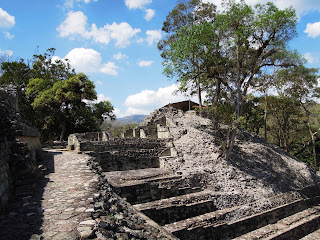 Co do wartości poszczególnych piramid czy estelli, to nie mnie się wypowiadać, choć miejsce naprawdę ciekawe i warte zobaczenia. Na muzeum już się nie zdecydowałam. Byłam zbyt zmęczona na oglądanie glinianych garnków i kości, wolałam chłonąć atmosferę majańskiego miasta i cieszyć się cisza i spokojem, bowiem turystów było ja na lekarstwo. A co do turystów…Najpierw tylko wspomnę, że w restauracji, w której czekałam na bus, zamówiłam kawę. Gdy ją skończyłam, podeszłam do pani i poprosiłam o rachunek. Dziewczyna patrzyła na mnie, nic nie rozumiejąc, co do niej mówię, jakbym mówiła do niej w innym języku. Powtarzam prośbę i dalej nic. I rzeczywiście, okazało się, że cały czas mówiłam do niej po polsku. Zdarzyło mi się coś takiego po raz pierwszy, chyba z tego zmęczenia.
