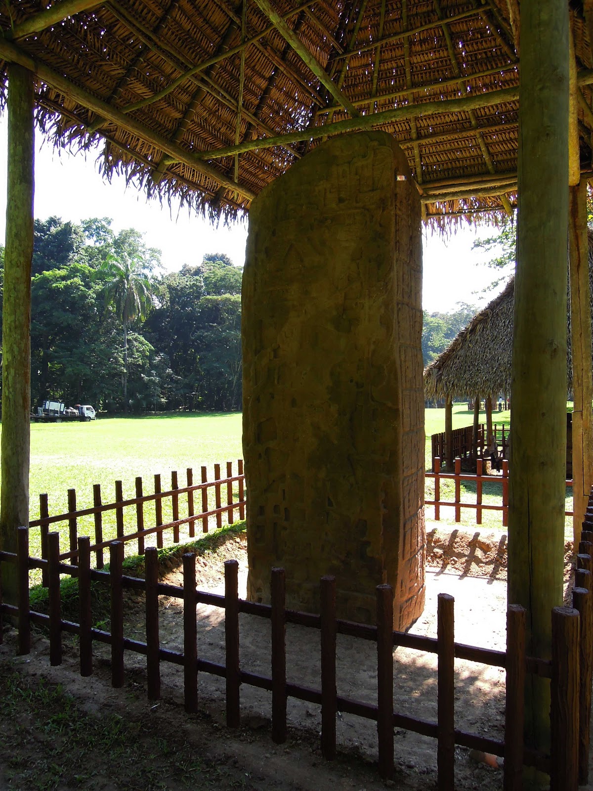 Nasza wycieczka zaczęła się o czwartej rano. To znaczy właściwie miała się zacząć, bo busik nie przyjechał punktualnie. Klęłam w myślach na kierowcę, bo mogłam spokojnie z pół godziny dłużej pospać. W hostelu przy drzwiach natknęłam się na Mike’a, który jak się okazało, również wybierał się do Tikal. Mike jest nauczycielem angielskiego na uniwersytecie w Sacramento.Więc jest nas piątka: ja, Fransesca – szalona emerytka koreańskiego pochodzenia, która mieszka niedaleko Chicago, a pół roku spędza zwykle w Meksyku, grając codziennie przez 7 dni w tygodniu po 7 godzin dziennie w golfa!!! Teraz przez kilka miesięcy siedzi w Gwatemali i po siedem godzin dziennie uczy się hiszpańskiego – to się nazywa życie! Mike już ją ochrzcił “vieja loca”, co znaczy stara wariatka 🙂 Jest szalona i uwielbiam ją za to! Oraz Halil i Furkan – dwudziestolatkowie z Turcji, którzy również uczęszczają do mojej szkoły. No i nasz przewodnik Hector ze swoją dziewczyną. Tego dnia mieliśmy w planie zwiedzenie ważnego dla Majów miejsca w Parku Narodowym Quiriqua, które należy do Światowego Dziedzictwa UNESCO, gdzie znajdują się wielkie piaskowe rzeźby tzw. estelas z rycinami Majów. Tam mogłam też podpytać przewodniczkę  o słynny kalendarz i dowiedzieć się nieco więcej o starożytnych Majach.