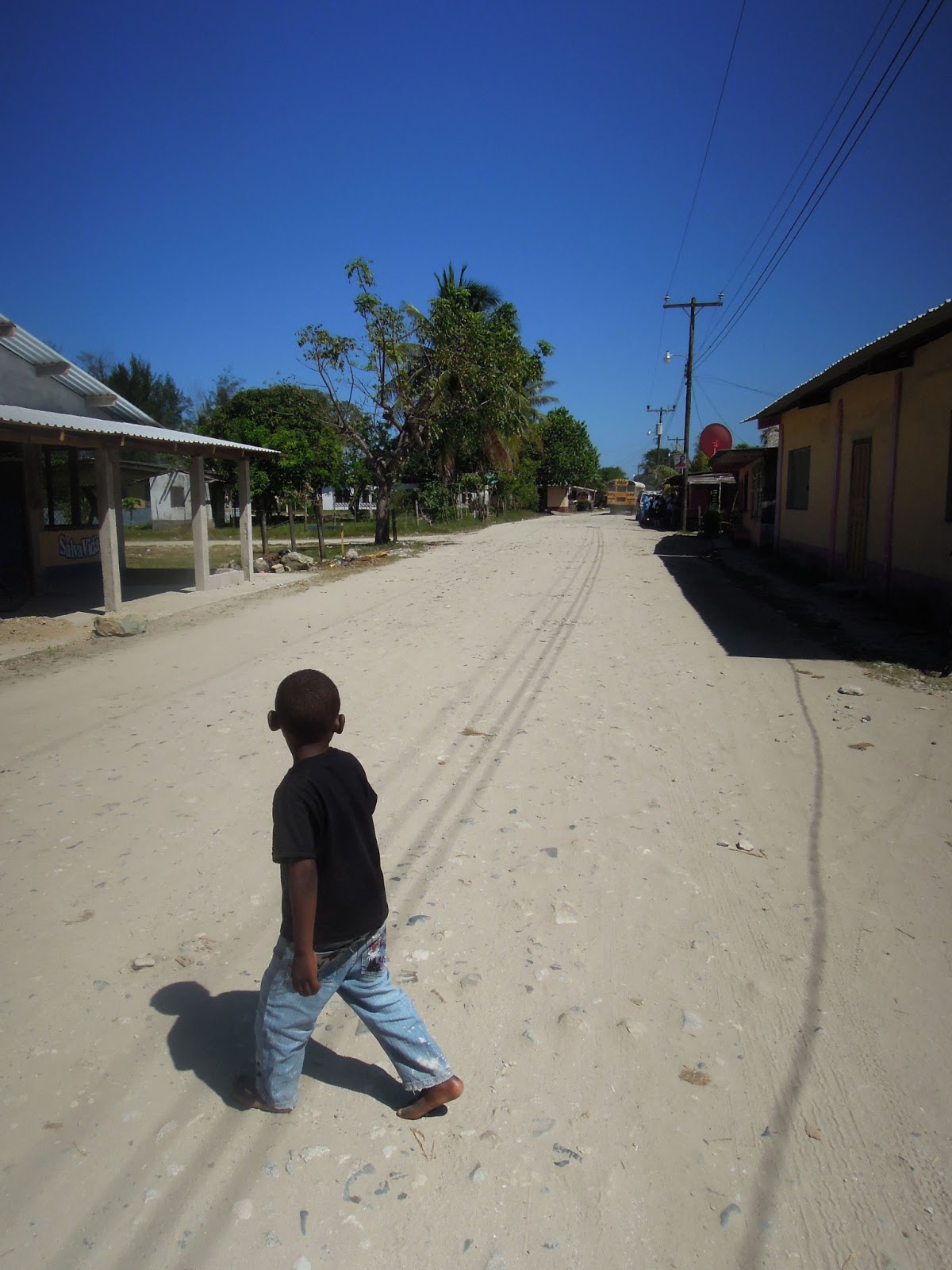 W Lonely Planet przeczytałam, że bez problemu można się tam dostać lokalnym busem. Zaryzykowałam znów pytaniem do sympatycznej pani w hotelu, gdzie znajdę przystanek, z którego odchodzą autobusy do Garifuna Village. Wiadomo, co usłyszałam. Z bólem, pokazała mi jednak, w którą stronę mam się kierować. Jej mina sprawiła, że zawahałam się. Wiedziałam jednak, że albo zacznę normalnie zwiedzać sama jak w Gwatemali albo muszę się spakować i zabierać z tego kraju jak najszybciej. Wybór padł na bramkę numer jeden. Pomyślałam tylko, że niech się dzieje co chce, zostawiłam duży aparat, pieniądze i dokumenty w skrytce i ruszyłam szukać „dworca”. Gdy dotarłam właśnie odjeżdżał jeden z żółtych szkolnych chickenbusów. Tym razem to jednak był naprawdę szkolny bus. W środku siedziało kilkudziesięciu uczniów w białych koszulach z kołnierzykiem. Chłopcy mieli granatowe spodnie w kant, a dziewczyny granatowe, plisowane spódniczki. I wszyscy, łącznie z kierowcą i pomocnikami, byli czarni jak heban. Gdy wskoczyłam do środka, wszystkie czarne, i nieco zdziwione oczy zwróciły się w moim kierunku (raczej za często tu turysty nie mają).