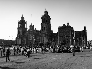 W stolicy miałam być cztery dni. Muszę przyznać, że choć byłam w wielu stolicach Europy, to tak wielkiego placu centralnego (czyt. Zocalo) oraz takiego tłoku, to chyba nigdzie nie widziałam. W stolicy poczułam się taka maleńka jak jeszcze nigdy w życiu. W Zocalo (Plaza de la Constitucion) nie widziałam nic pięknego. Może przytłoczył mnie ogrom przestrzeni, otoczonej wprawdzie przez interesujące budynki z największą w całym Meksyku katedrą, ale również przez przelewający się wszystkimi stronami tłum, przez który musiałam przedzierać się niczym przez dżunglę. W sumie zielona dżungla, przez którą się przedzierałam to nic w porównaniu z tą meksykańską betonową. Mexico DF (District Federal) mierzy ponad 40 km długości, ciągnąc się z północy na południe, a gęstość zaludnienia tu uważa się za największą na świecie – 25 – 30 mln (wg. Beadekera).