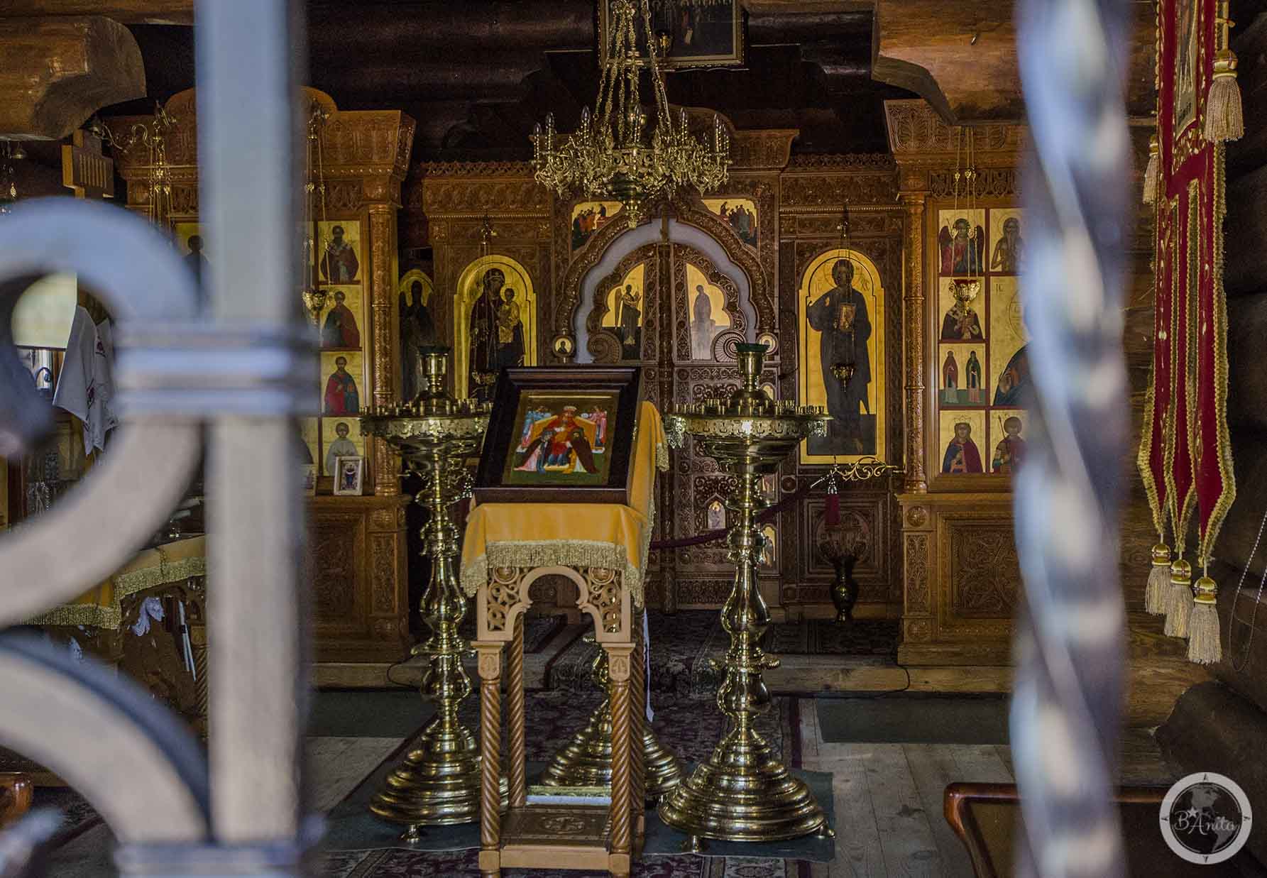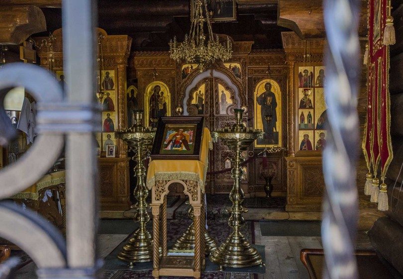 – Inaczej nie pozwoliliby wybudować. Z zewnątrz budynek gospodarczy, a w środku „hozjain” – gospoda. W cerkwi nie są w stanie pomieścić wszystkich pielgrzymów. Tu w każdą sobotę i niedzielę bywa na raz nawet trzysta osób. Mój przewodnik zwraca uwagę na ołtarz rzeźbiony w drzewie lipowym. – Styl grecki. Ojcu na nim zależało, a u nas takiego nie ma. W Grecji był robiony.