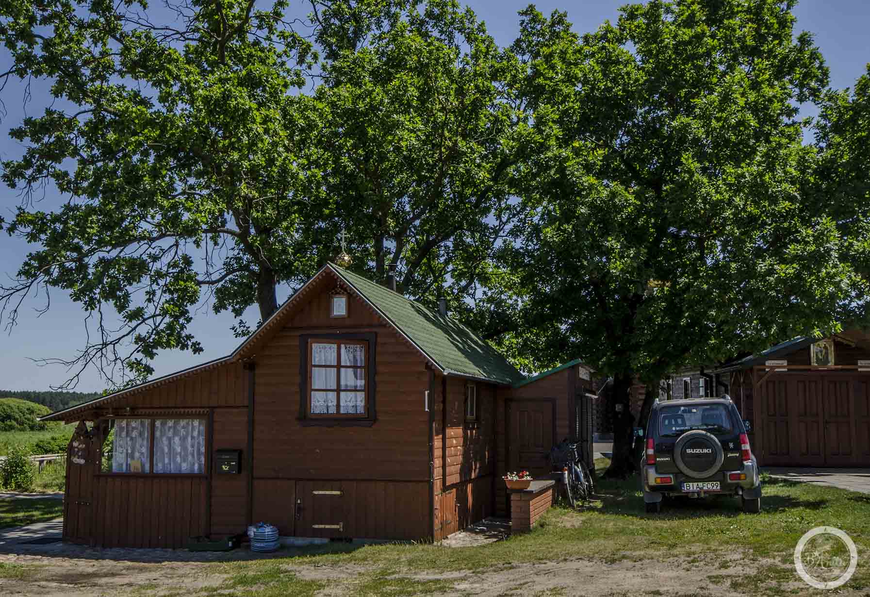 Choć nie jestem ubrana „po cerkiewnemu”, czyli nie mam spódnicy, a spodnie i brak mi nakrycia głowy (od biedy buff na włosach uchodzi), ale „niech Bóg wybaczy” wchodzę do cerkwi. Pan Włodzimierz pokazuje mi studnię ze świętą wodą, którą mają od dwóch lat (wcześniej dobrzy ludzie wodę ojcu wozili). Tę wodę ponoć należy przyjmować na czczo po porannej modlitwie. Oglądam też ikony pisane w Zwierkach przez siostry i rzeźby rzeźbione na Uralu. Spacerujemy liczącą osiemset metrów kładką, którą ojciec Gabriel nazwał „kładką życia”, bo przez te bagna, wiosenne roztopy wcześniej bywały czasy, że przez półtora miesiąca ojciec nie widział żywego człowieka. Od momentu, kiedy kładka istnieje ludzie mogą przychodzić do ojca przez cały rok.