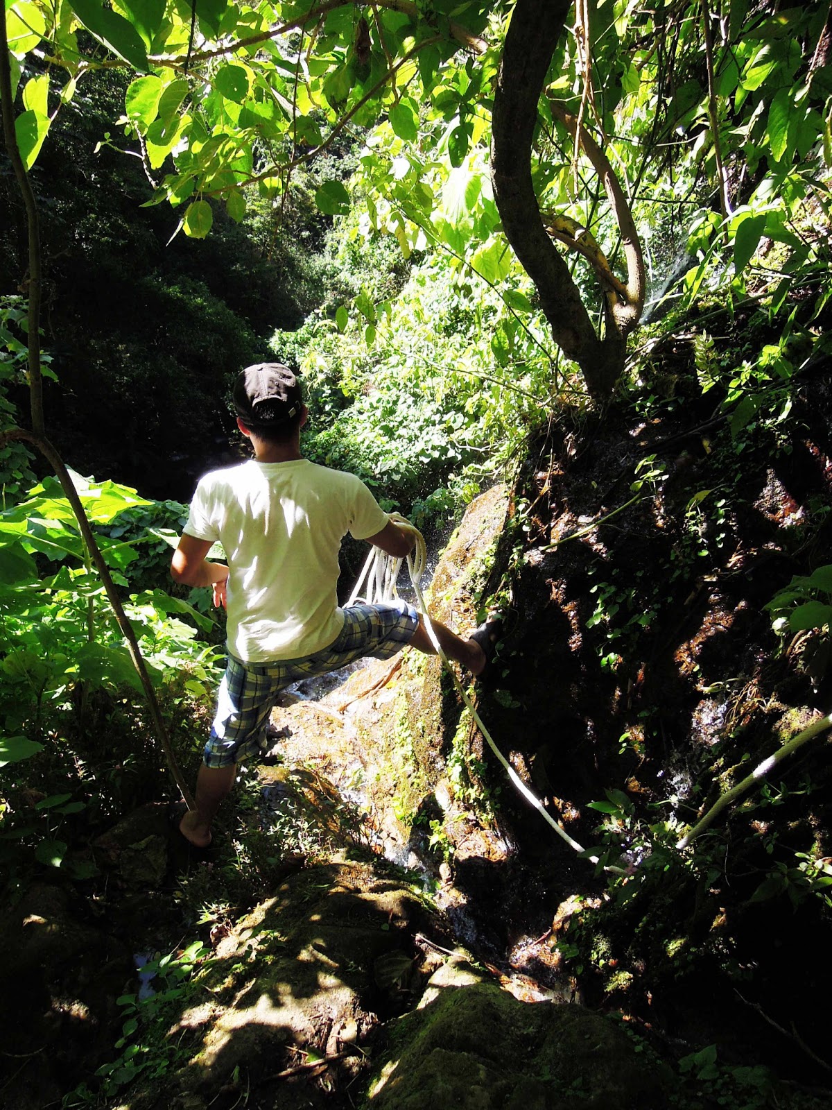 Mój przewodnik wyraźnie nie miał takiego zamiaru. Opierając więc stopy o skały, spływające lawiną wody, zsuwaliśmy się w dół. Woda lała się po mojej twarzy i ubraniu. Po chwili miałam już mokre wszystko, łącznie z bielizną. Ale frajda była niesamowita. Może i dobrze, że nikt mnie nie uprzedził, bo miałam wielką niespodziankę. Byłam przekonana, że raczej nic mnie nie zaskoczy. Traktowałam tę wędrówkę, jako spacer do wodospadów i tyle. Nie pomyślałabym w życiu, że będzie mnie czekała niemal ekstremalna wspinaczka, a raczej ekstremalne schodzenie po linie. Mój błąd. Drugi popełniłam, zakładając, że będziemy szli na siedem różnych wodospadów. No, bo skąd w końcu nazwa?