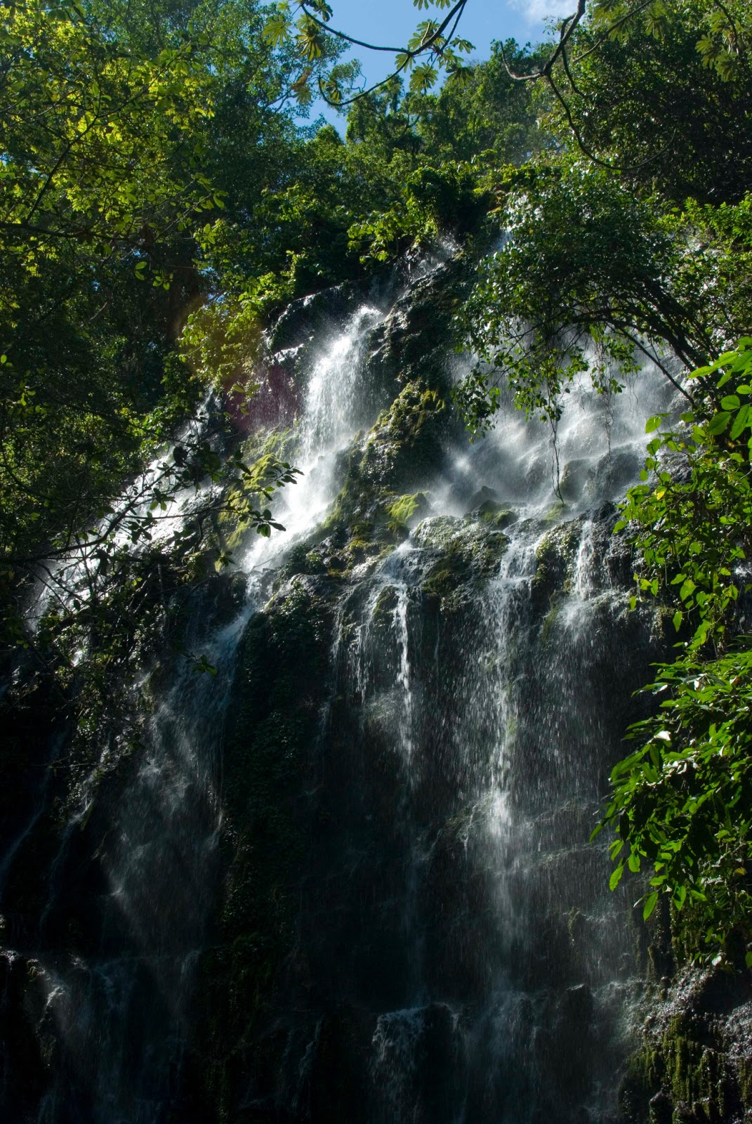 Okazało się, że Siedem kaskad to jednak jedna kaskada 🙂, tylko że długa, ciągnąca się przez około trzynaście metrów i to na różnych, siedmiu wysokościach. Nie miało to jednak żadnego znaczenia, bo wrażenie całości było niesamowite. Wodospad przepiękny, majestatyczny i dziki. Znów poczułam się niemal jak Indiana Jones i poszukiwacze zaginionego skarbu, przedzierający się przez dżunglę, pełną wody, trudnych do pokonania przeszkód i groźnych zwierząt. Ze zwierząt w lesie wprawdzie były tylko pięć psów, które nam towarzyszyły, i których ubywało w miarę upływu czasu i wzrastania liczby wodnych przejść. Cóż tu dużo pisać. Było cudownie.