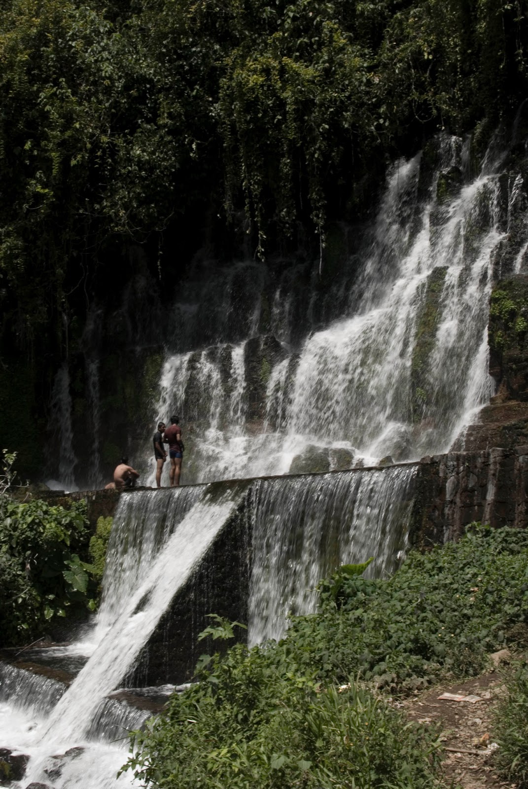Otóż w zimie, czyli w miesiącach począwszy od maja (w Salwadorze mają bowiem dwie pory roku: lato, czyli porę suchą i zimę, czyli porę deszczową, z których każda trwa sześć miesięcy) zaczyna kwitnąć kawa. A ponieważ w tych okolicach, uprawia się sporo tego przysmaku, więc całe pola usłane są kwieciem. Warto więc Rutę de las Flores odwiedzić w kwitnący maj. Moja teoria o słupach elektrycznych okazała się więc błędna. Mogę więc odwołać pomysł z „gdańską droga mleczną”. Wędrówkę zakończyliśmy na wodospadzie Los Chorros, w której chętni mogą popływać. Jako że ja już zaliczyłam porządne nurzanie się w wodzie tego dnia, postanowiłam dwa razy do tej samej wody nie wchodzić.