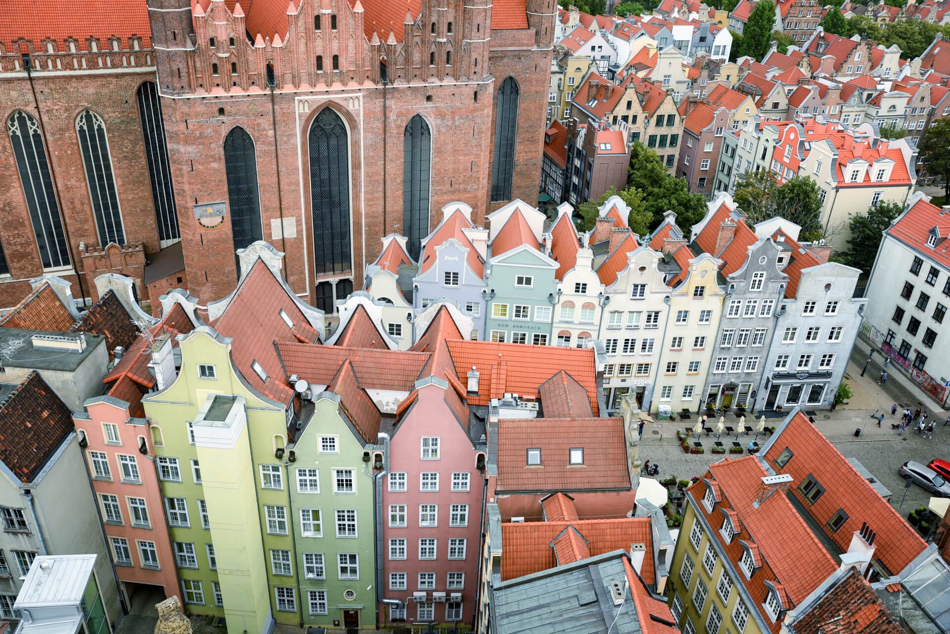 Gdańsk słynie z jednych z najciekawszych obiektów gotyku ceglanego w Europie. Zaczynam od Dworca Gdańska Głównego na Podwalu Grodzkim. Stamtąd już tylko kilka kroków do Dworu Bractwa Św. Jerzego, które było najstarszym bractwem kurkowym w Gdańsku i zajmowało się szkoleniem członków na wypadek konieczności obrony murów miejskich. W budynku mieściła się strzelnica oraz przechowywano sprzęt łuczniczy. Podczas wojny, jak wiele budynków, tak i ten został znacznie zniszczony. Odbudowano go w latach 50.
