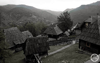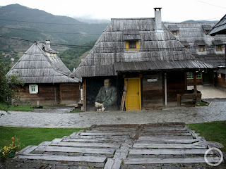 Po przerwie na kawę, do której zostałyśmy zmuszone, zabraniu kolejnej autostopowiczki, łaskawie postanowili nas podrzucić do „Disneylandu” Emira Kusturicy. Skąpane w mgle i otoczone wilgocią drewniane domki ze spiczastymi dachami wyglądały zagadkowo. Pożegnałyśmy się z naszymi towarzyszami i ruszyłyśmy na zwiedzanie drewnianego miasta. W momencie, gdy kupiłyśmy bilet wstępu, nastąpiło ponowne oberwanie chmury. Ukryłyśmy się w jednej z knajpek. Poczułam znów ulgę. Chociaż nie miałyśmy pojęcia, gdzie będziemy spać i czy w ogóle znajdziemy jakieś niedrogie miejsce do spania w tej małej mieścinie, to czułam się bezpiecznie.