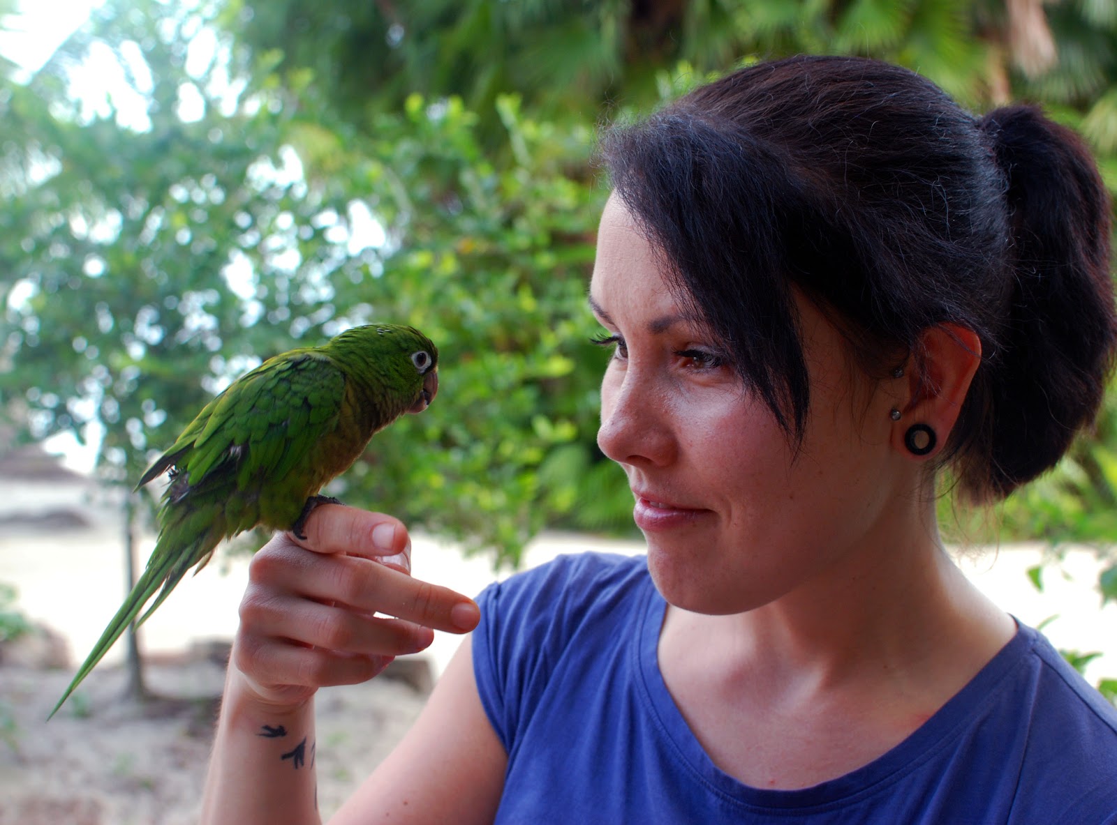 Popłynęliśmy na Playa Blanca, która znana jest z białego piasku. Piękne miejsce, ale głównie stworzone z przeznaczeniem dla turystów. A sam piasek, muszę przyznać, że bielszy chyba w Białogórze mamy. Miałam tam jednak niezwykle miłe spotkanie z bardzo przyjazną papużką, która za wszelką cenę starała się zjeść moje palce. Oczywiście mój aparat nie przestawał pracować podczas tego niespodziewanego spotkania.